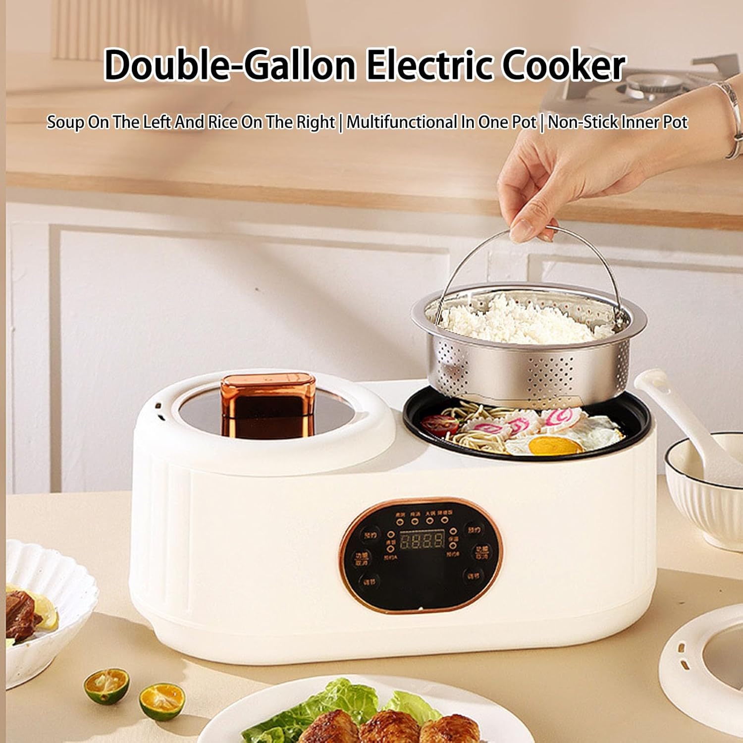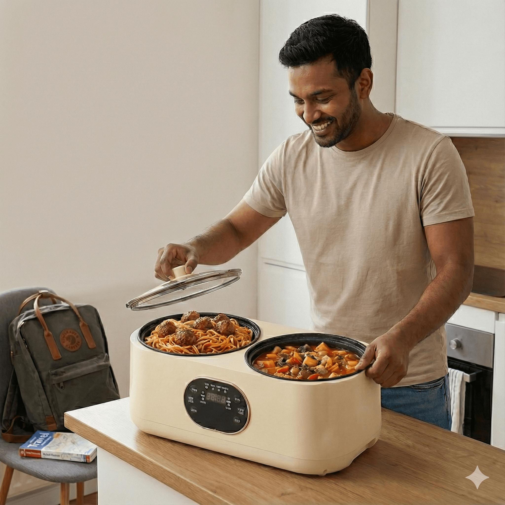 قدرين في جهاز واحد: سعة 1 لتر لكل قدر، اطبخ صنفين مختلفين في نفس اللحظة.